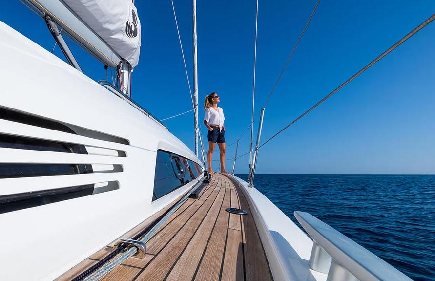 Εκτός από τις επιδόσεις της στη θάλασσα και την τεράστια ποσότητα χώρου που κάνουν αυτό το σκάφος να ξεχωρίζει, αυτή η αρχιτεκτονική κάνει βέλτιστη χρήση της δέσμης του πιλοτηρίου. Ένα απίστευτα αποδοτικό σχέδιο καταστρώματος το καθιστά θαυμάσια ασφαλές και εύκολο στη χρήση. -